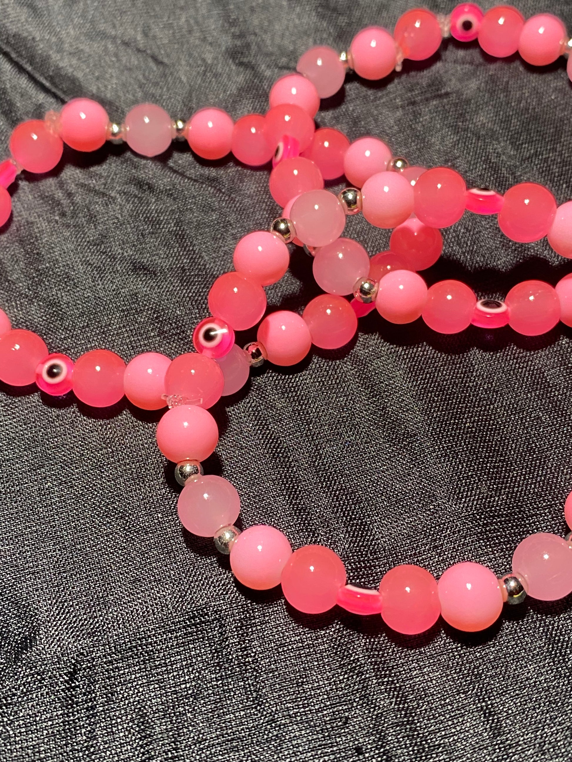 The Pink Evil Eye bracelet is the ultimate accessory for protecting off bad vibes.
