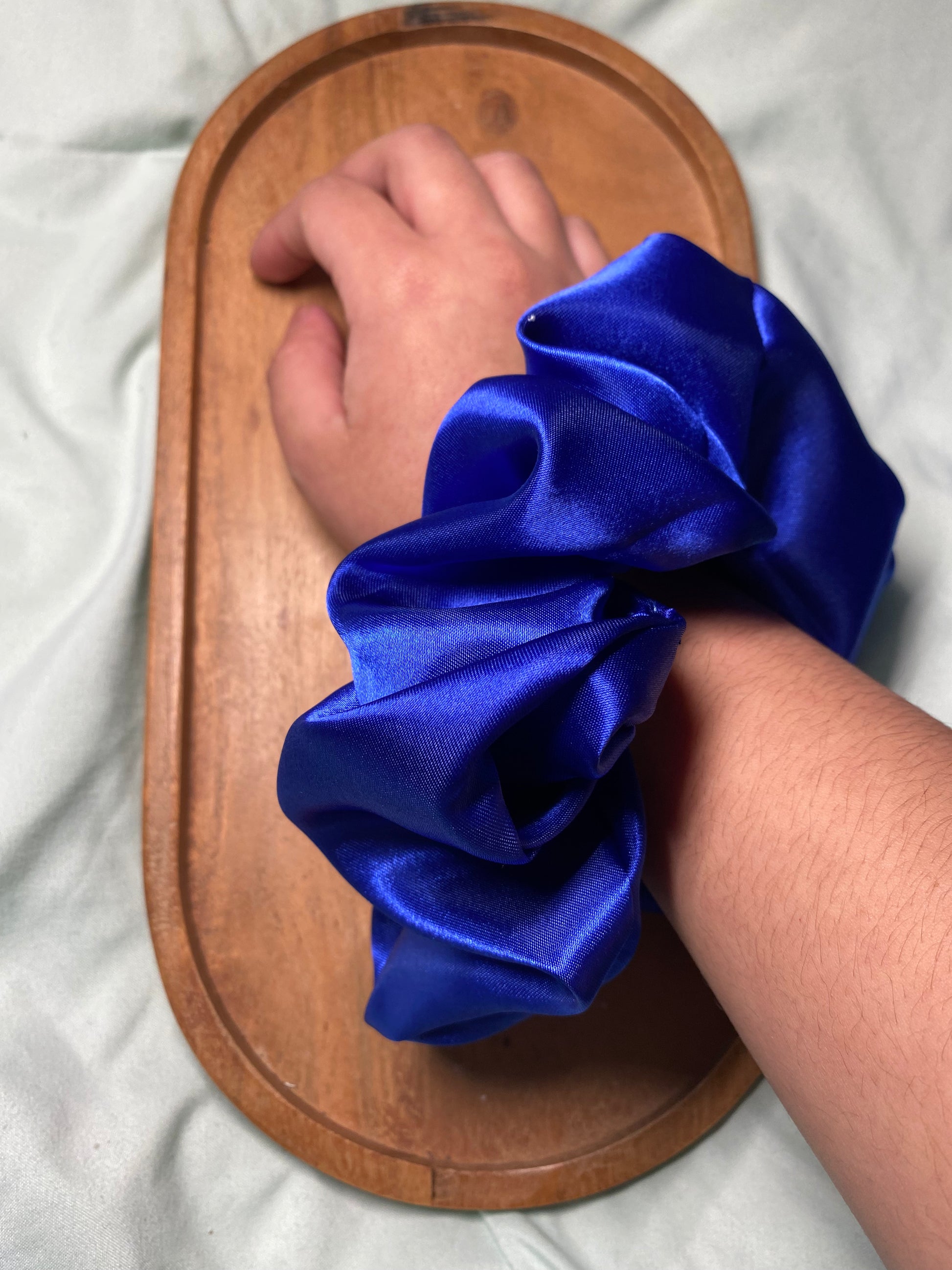 Add a touch of elegance and fun to your hairstyle with the Royalty blue silk scrunchie. Soft, smooth, and gentle on your hair. Perfect for dressing up or adding a pop of color to your everyday look!